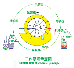 吸漿區:重任時被淹在料漿的吸附性板在孔隙度化下連接真空環境壓差,形象吸附性排成層濾餅,濾液通過的時候隔膜壓濾機進利潤分配閥至排液罐。