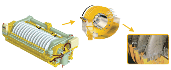 卸料區:流入無真空泵的生態環境下,刮刀及時卸料。